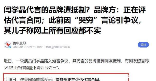 前言 一位深耕荧幕数十年的一级演员,凭“国民好媳妇”人设圈粉无数,为何会因一场直播陷入“炫富”争议? 从2025年末到2026年初,闫学晶的名字始终缠绕在舆论漩涡中,社交媒体上的直播切片、旧料嫁接视频轮番传播,网友的抵制声浪从个人蔓延至代言品牌。 社交媒体上的碎片化信息,如何让真相在传播中逐渐模糊? 这一次,她的直播内容却成了争议的导火索,而社交媒体上流传的各类信息,更让这场风波朝着不可控的方向发展。