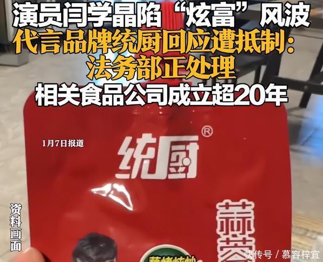 首当其冲的是闫学晶代言的两大调味品品牌——统厨和佐香园。统厨品牌隶属于天津市超时调料酿造有限公司,其官方旗舰店主要销售酱料产品。 2026年1月7日,统厨品牌方工作人员向南都记者表示,闫学晶确为公司产品代言人。 面对此次风波,公司法务部已介入处理相关事宜,“目前还在解决中,暂时没有处理结果,可以留意官方发布的消息”。