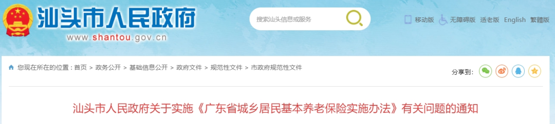 〈广东省城乡居民基本养老保险实施办法〉的通知》(粤府〔2019〕105号)
